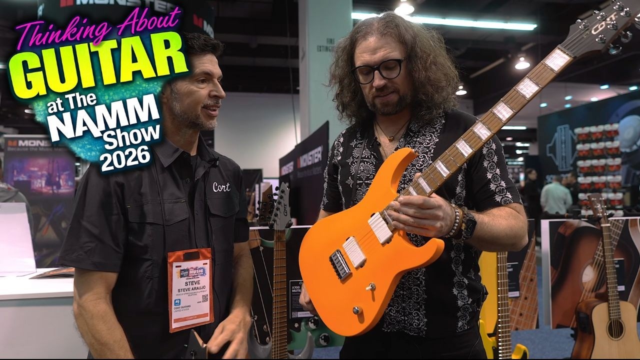 Thinking About Guitar heads to the Cort booth at NAMM 2026 to explore the new Space Series travel-ready electrics, a subtle multiscale model designed to feel natural fast, the Seymour Duncan-equipped G290 workhorse, and the neck-through KX600 with Fishman Fluence dual-voice pickups.